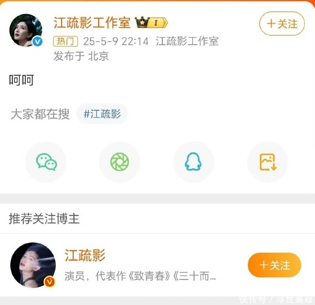 眼看虚构情节即将演化为“事实定论”,江疏影工作室终于在今年5月9日作出反应,仅用两个字回应:“呵呵”。
