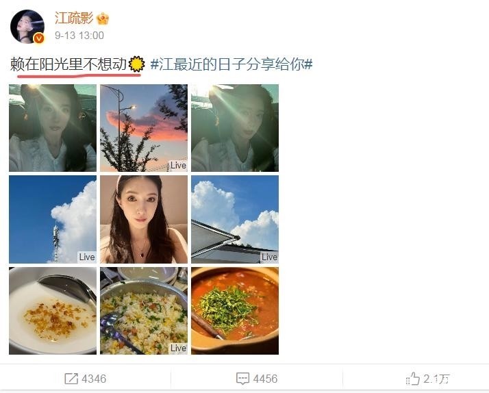 从零星发布的社交内容来看,这半年她过着节奏舒缓的生活:分享街角咖啡馆的一杯拿铁,晒出海边落日余晖的照片,配文满是“享受当下”“慢下来真好”这类充满松弛感的文字。